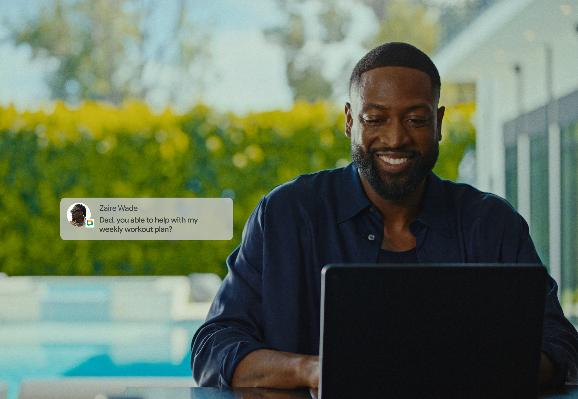 Advertisement showcasing how Dwyane Wade uses Google Workspace and Duet AI for his business Proudly.